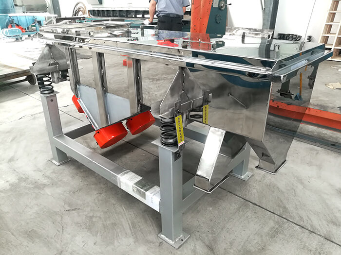首先,我們對直線振動篩的工作原理進(jìn)行闡述:直線振動篩是利用振動電機(jī)激振作為振動源,使物料在篩網(wǎng)上被拋起,同時向前作直線運(yùn)動,物料從給料機(jī)均勻地進(jìn)入直線振動篩的進(jìn)料口,通過多層篩網(wǎng)產(chǎn)生數(shù)種規(guī)格的篩上物、篩下物、分別從各自的出口排出。具有低能耗、產(chǎn)量高、結(jié)構(gòu)簡單、易維修、全封閉結(jié)構(gòu),無粉塵溢散,自動排料,非常適合于在生產(chǎn)工藝的流水線作業(yè)。